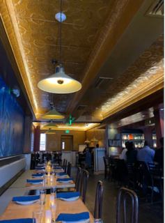 Located in the former Lumière Restaurant space, The Bluebird Bar is much more than a bar. It's a warm, friendly restaurant with the bar in the middle with booths on one side and high/low top tables on the other. We have reserved 12 seats at the low-top tables under the blue wall mural. We have also requested Phillip, who Judy and Jim dubbed "super waiter" as a result of top-notch service at our two recent jazz brunches, be our waiter.